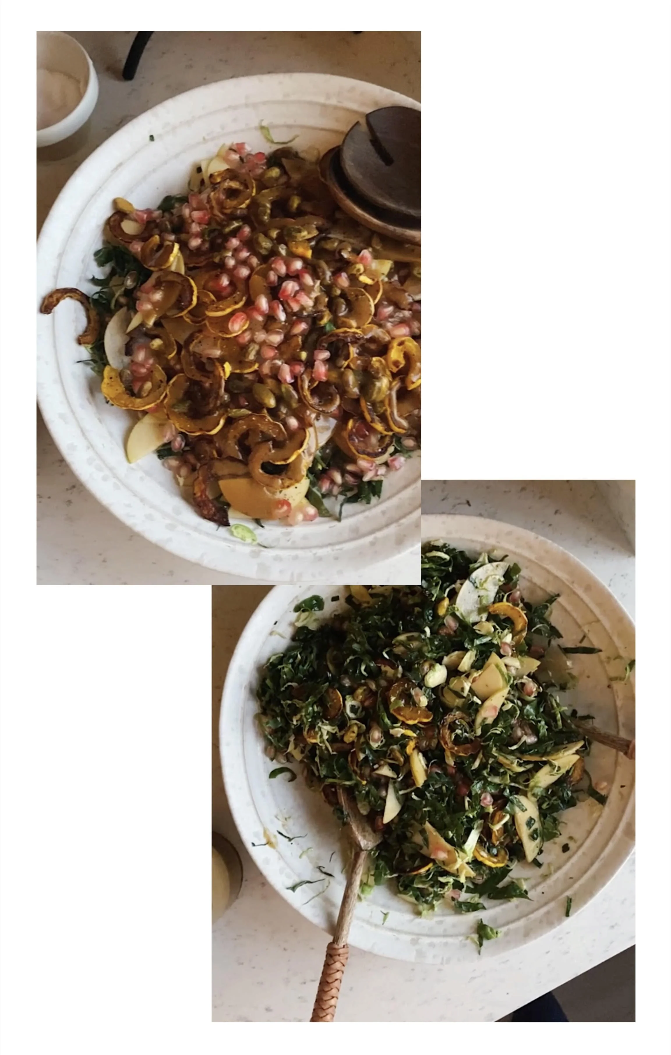 This salad features some of my all time favorite fall ingredients (looking at you delicata squash and pomegranate) and is seriously an explosion of flavors and textures. It’s easy to throw together and would be amazing on a Thanksgiving table!