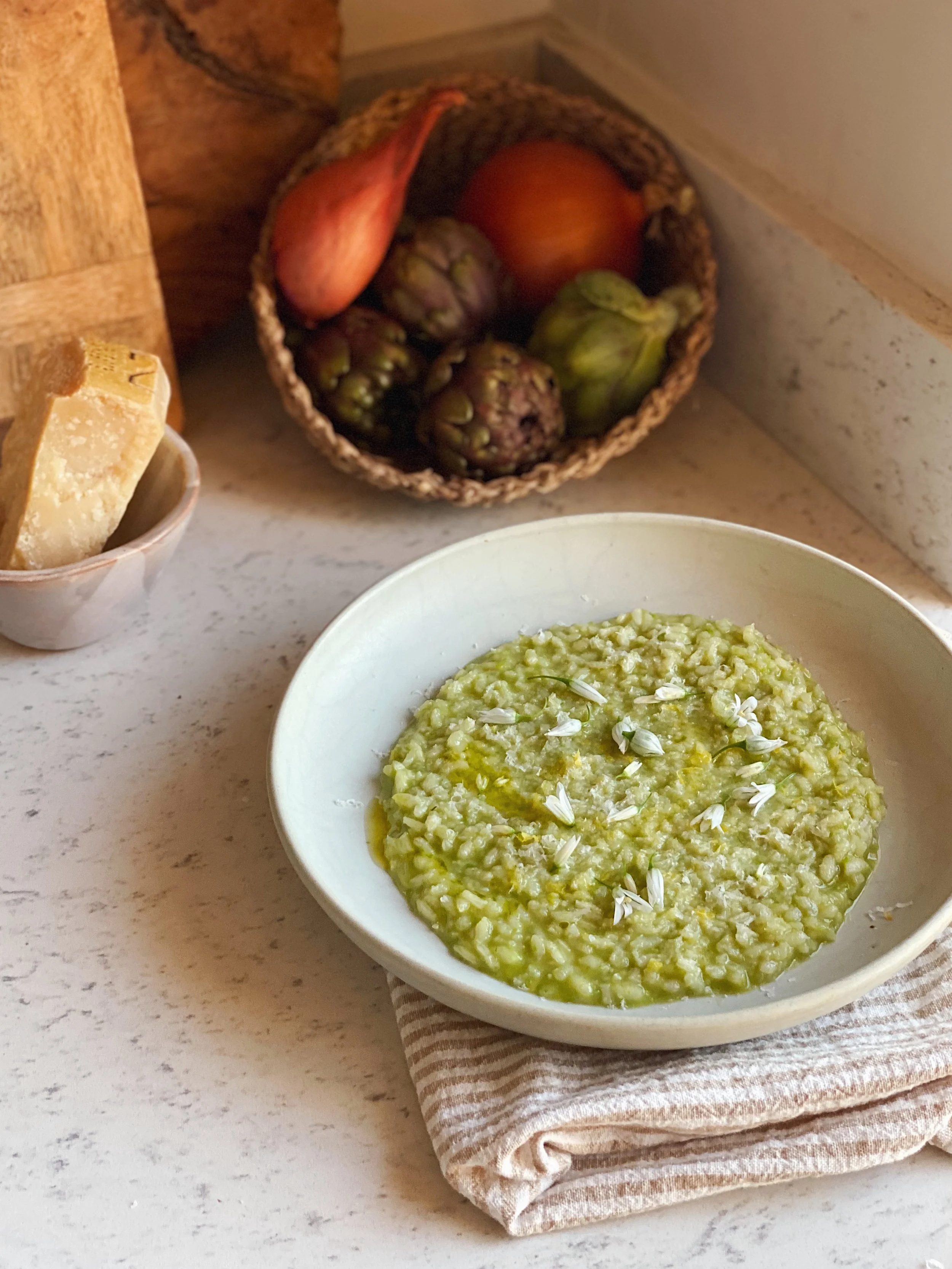 Butter – risotto is a traditional Northern Italian dish and Northern Italy is green and lush, which makes it a prime place for cattle + livestock to live. Because of this, they have more access to milk (and butter), so Northern Italian dishes traditionally use butter as the fat. This is why a traditional risotto is made with butter instead of olive oil. You can of course use olive oil if you prefer or have it around but thought this was really interesting!